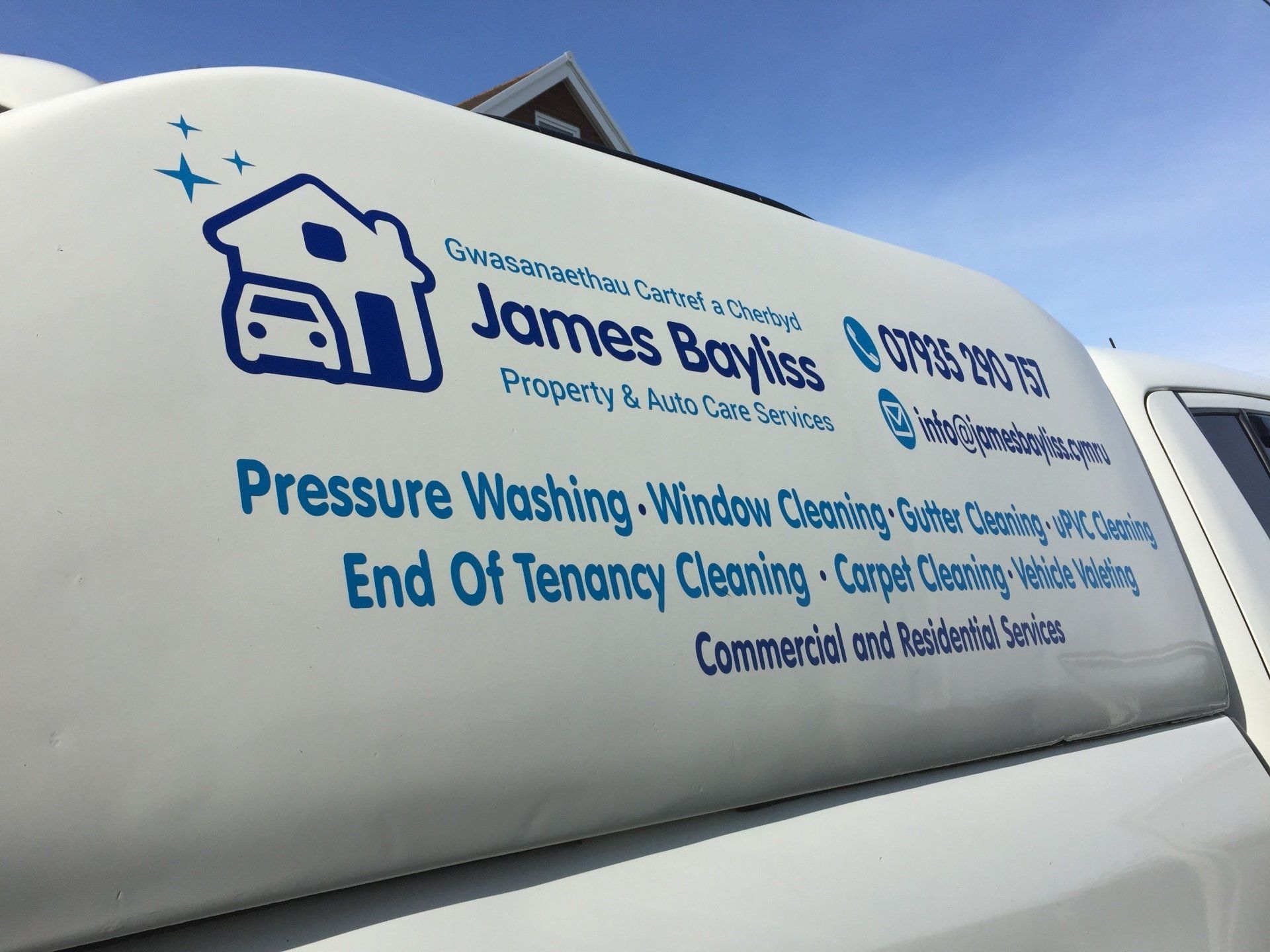 Sefydlwyd Gwasanaethau Cartref a Cherbyd James Bayliss yn 2018, gan gynnig amryw o wasanaethau gan gynnwys, glanhau ffenestri, cafnau, uPVC, glanhau ceir a moduron yn fwy, gan gynnwys hefyd gwasanaethau garddio a chynnal tir, glanhau carpedu ac yn y blaen. Rydym yn gwmni sy’n tyfu ac yn prysuro.